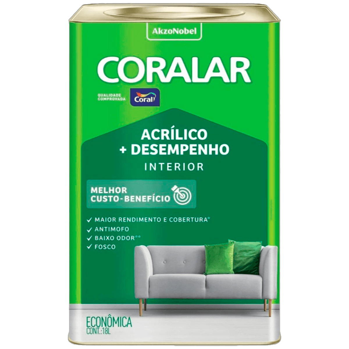 Coralar + Desempenho é a tinta econômica que proporciona o melhor custo-benefício, pois possui maior rendimento e cobertura, além de ser